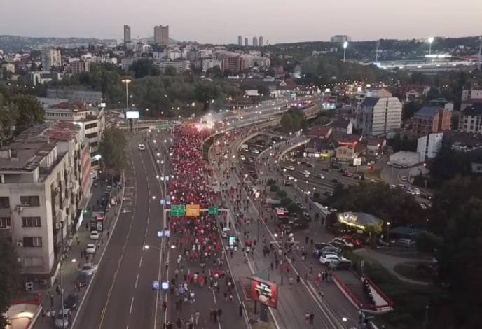 Navijači ta dva kluba skupili su se kod Terazijske česme, gde su napravili feštu, a onda se njihov korteo zaputio ka "Marakani".