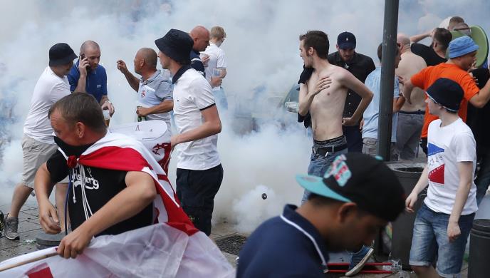 Velika grupa engleskih navijača, svi u vidno alkoholisanom stanju, flašama su napali specijalne policijske snage.