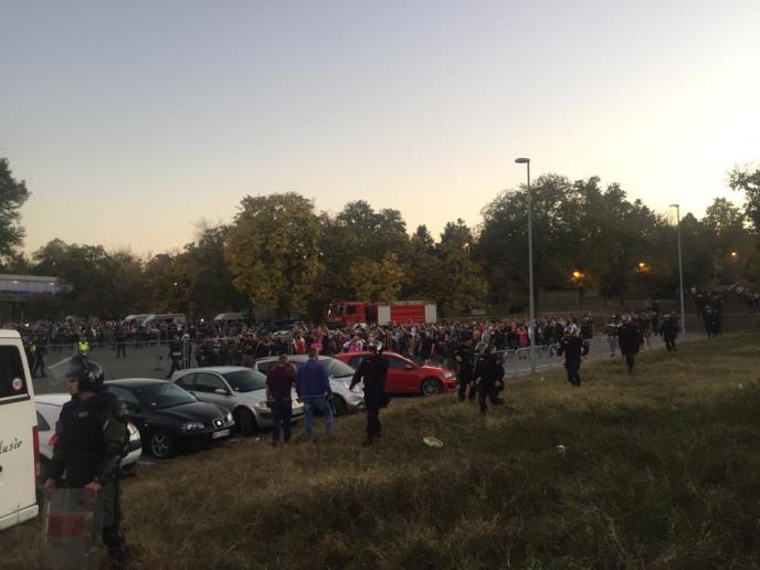 U istom trenutku stigli su i Grobari pod zastavom ''Partizanovaca'' koje je policija zaustavila kako bi na stadion prvo ušli gostujući navijači.