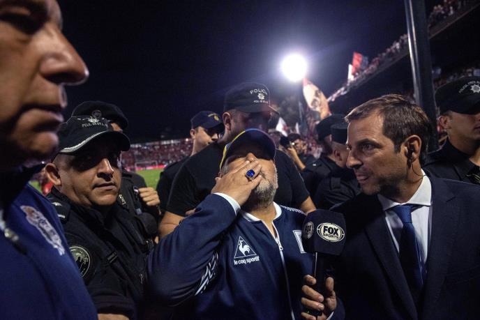 Na stadionu "Marselo Bjelsa" u Rosariju, Maradona je u danu kada slavi 59. rođendan ovacijama pozdravljen 42.000 navijača Njuelsa, koji su na tribinama isticali transparente sa njegovim likom, a uz klupu mu je bila postavljena specijalna fotelja sa natpisom "Bog", da iz nje vodi utakmicu.