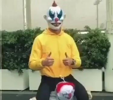 Portugalski as je na lice stavio masku Džokera iz kultnog filma "Betmen", a obukao se u kostim klovna iz filma "Ono", ali tako da izgleda da Džoker jaše klovna.