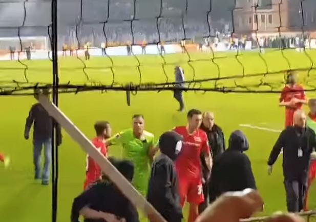Međutim, najburniji momenat bio je kada se golmana Uniona Rafa Gikevic sukobio sa navijačima svog kluba.