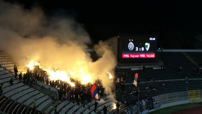 Navijači Partizana napravili su sjanu bakljadu tokom drugog poluvremena utakmice sa Inđijom.