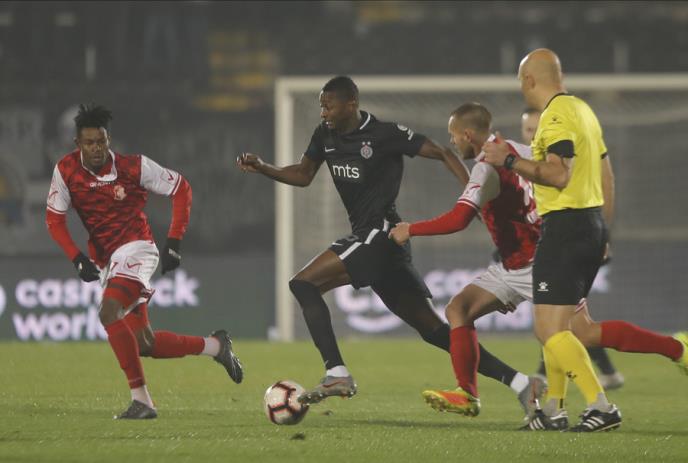 66. minut - Suma je promašio zicer! Potpuno sam je bio ispred golmana gostiju posle sjajnog dodavanja Sadika, ali je Gvinejac tukao pravo u Miloševića i propala mu je šansa da upiše het-trik, ali i da donese Partizanu vođstvo od 3:1.