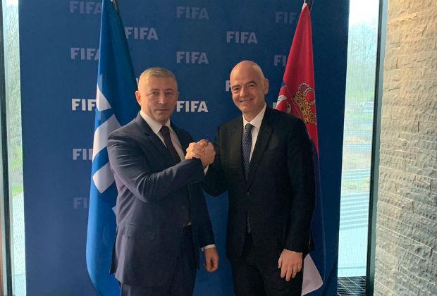 Predsednik Fudbalskog saveza Srbije Slaviša Kokeza sastao se u Cirihu sa predsednikom FIFA Đanijem Infantinom.
