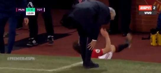 Velšanin je pao i prilikom pada nezgodno glavom zakačio Murinja po kolenu, potom je i sam fudbaler udario glavom.