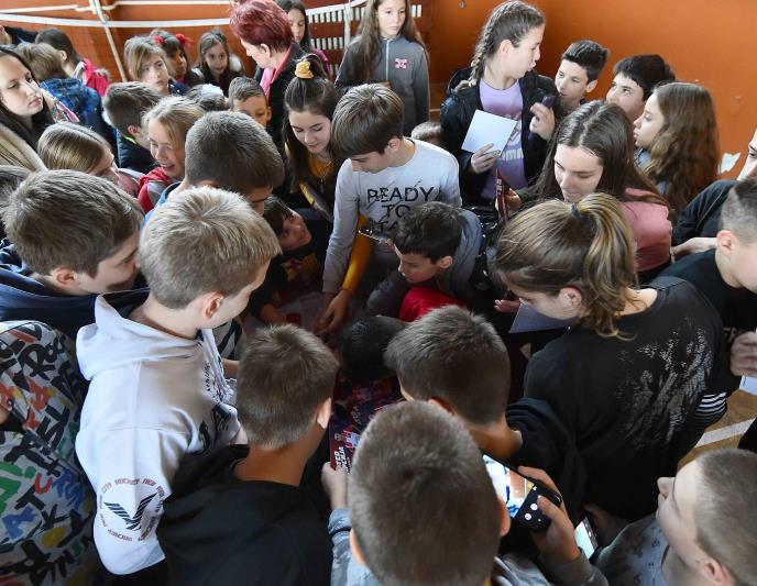 Devojčice i dečaci, pa i oni stariji, u redu su čekali da se fotografišu sa prvotimcima Zvezde, a dobili su i autograme na specijalno personalizovanim karticama. Vidno oduševleni, najmlađi školarci, obojili su svoje dvorište u bojama Crvene zvezde.