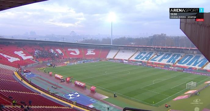 Na tribinama "Marakane" gotovo da je sablasna atmosfera. Tek 1.000 navijača je na tribinama.