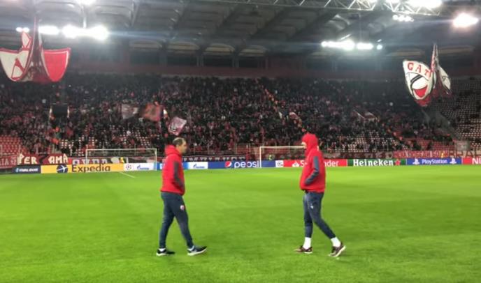 DOČEKALI IH KAO BRAĆU: Evo kako su navijači Olimpijakosa poželeli toplu dobrodošlicu fudbalerima Zvezde na Karaiskakisu