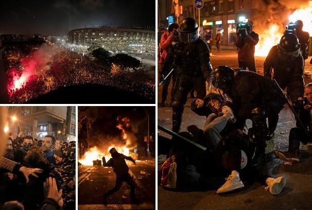 Najmanje 46 ljudi je povređeno kada su se hiljade katalonskih separatisti sukobili sa policijom kod stadiona Kamp Nou, na kome su sinoć veliki derbi igrali fudbaleri Barselone i Real Madrida.
