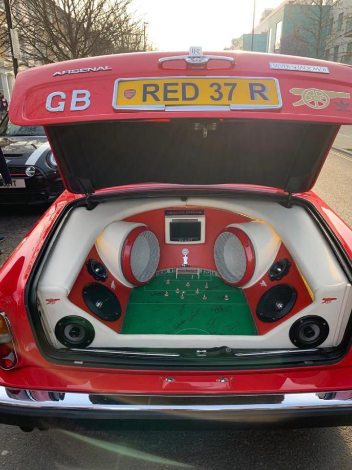 Svoju limuzinu staru 25 godina ovaj Britanac je ukrasio bojama i obeležjima Arsenala. I ne samo to - u gepeku je instalirao mini Hajberi, stari stadion Arsenala, na kojem je ovaj klub beležio najveće uspehe u svojoj istoriji.