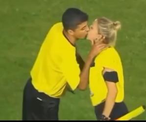 Ona ga je tada pozvala da joj priđe i krenula rukom prema džepu kao da će mu dati karton. Umesto toga iz džepa je izvadila maramicu i obrisala znoj s lica, a igraču se samo slatko nasmijala.