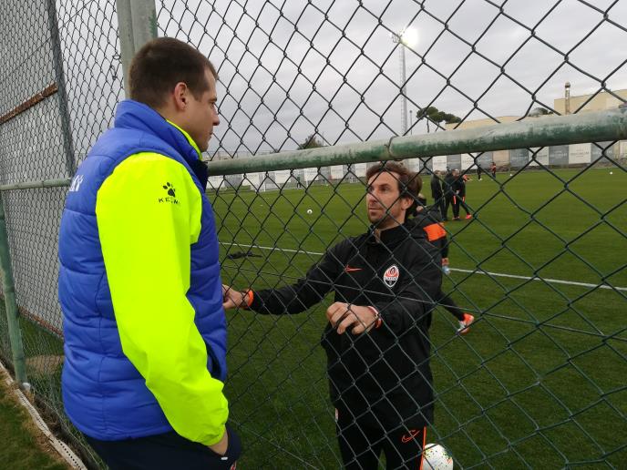 Čim je završen trening Šahtjora, Darijo Srna je izašao sa terena i bacio se u zagrljaj Nenadu Lalatoviću. Dvojica prijatelja koji su zajedno igrali tri godine u Donjecku proveli su više od deset minuta u prijatnom razgovoru, a onda je Srna morao nazad na teren, da tradicionalno posle svakog treninga, odigra utakmicu između stručnog štaba prvaka Ukrajine i pomoćnog osoblja. Ovaj meč je na opšte iznenađenje završen pobedom ekonoma, doktora i masera rezultatom 4:2.