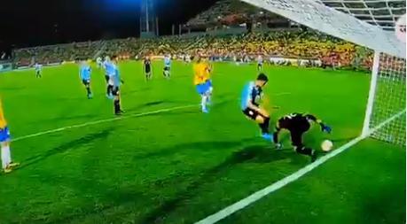 Ipak, umesto da loptu uhvati rukama, on je neshvatljivo gurnuo loptu kroz noge, tako da je ona prešla gol-liniju.