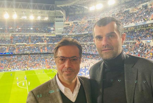Nikola Damjanac i Fali Ramadani, menadžerski tandem iz agencije LIAN sports, nalazi se u loži stadiona Santjago Bernabeu, gde gledaju utakmicu Lige šampiona između Reala i Mančester sitija.