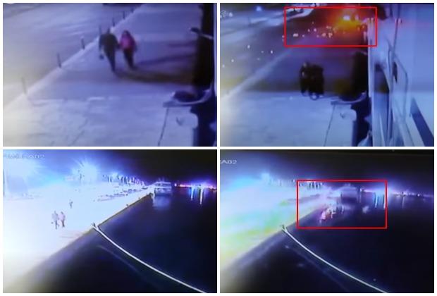 Na snimku sa nadzorne kamere broda, koji se pojavio na društvenim mrežama, vide se muškarac i žena ali i jedan biciklista koji u poslednji čas izbegavaju nesreću.