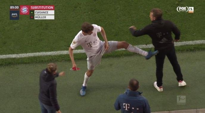 Kako je poželjno ophoditi se i izbegavati grljenje i ljubljenje pokazao im je Tomas Miler. Iskusni napadač Bajerna zamenjen je na gostovanju u Berlinu protiv Uniona u 90. minutu, a po izlasku sa terena pozdravio se sa trenerom Flikom na neobičan način. Tako što ga je šutnuo.