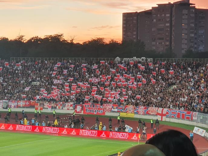 Navijači Crvene okupirali su severnu tribinu Partizanovog stadiona u velikom broju u isčekivanju početka polufinalnog okršaja u Kupu Srbije sa večitim rivalom.