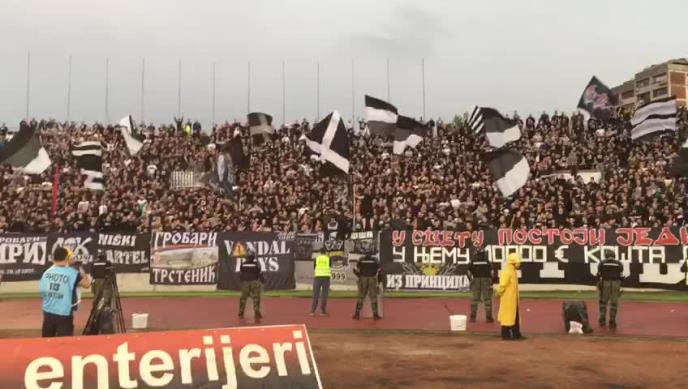 Južna tribina stadiona u Humskoj ispunjena je do poslednjeg mesta. Mnogo crno-belih zastava viorilo se tribinom.