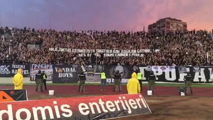 Grobari su na južnoj tribini istakli transparent na kom je pisalo: