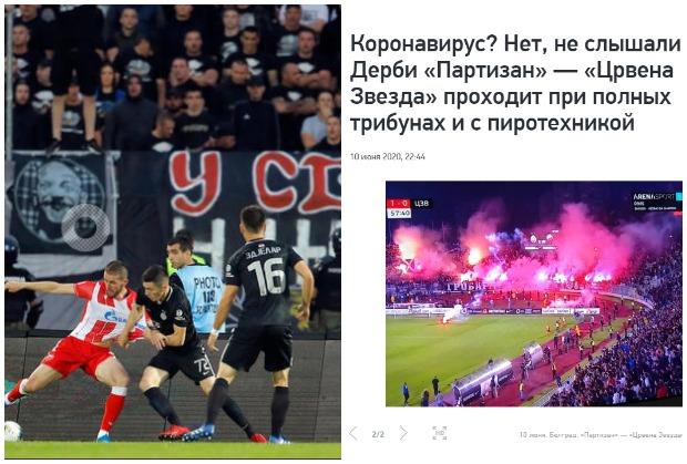 Ruski novinari ističu da se derbi u Beogradu igra pred punim tribinama uprkos pandemiji koronavirusa i činjenici da se svakodnevno u Srbiji otkrivaju novi slučajevi zaraženih virusom COVID 19.