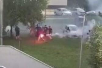 "Sukobilo se oko dvadesetak navijača dva kluba, a policija je vrlo brzo i energično reagovala i privela 16 osoba, protiv kojih će biti pokrenuta istraga. Znamo identitet nekolicine navijača koji su pobegli sa mesta događaja i u toku je njihovo pronalaženje i privođenje", navodi se u saopštenju.