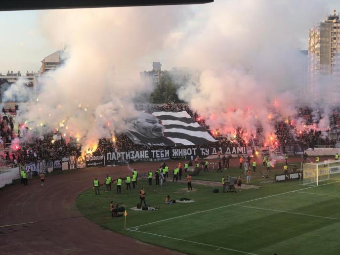 Navijači Partizana su odmah na startu meča napravili bakljadu.