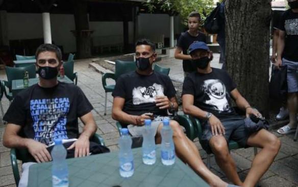 Nakon što su na poklon, svako po svojoj želji, dobili majice sa različitim motivima, navijači su ugostili fudbalere u bašti restorana stadiona .