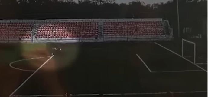 U trenutku kada je Zaborovski koji ima svega 16 godina želeo šutnuti loptu udario ga je grom, što je jasno zabeležila kamera na stadionu.