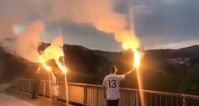 Prilikom ulaska u grad, na mostu iznad magistralnog puta, dočekalo ih je sjajno iznenađenje. Par navijača crno-belih priredilo je sjajnu baljkadu fudbalerima iz Humske ulice u znak dobrodošlice.