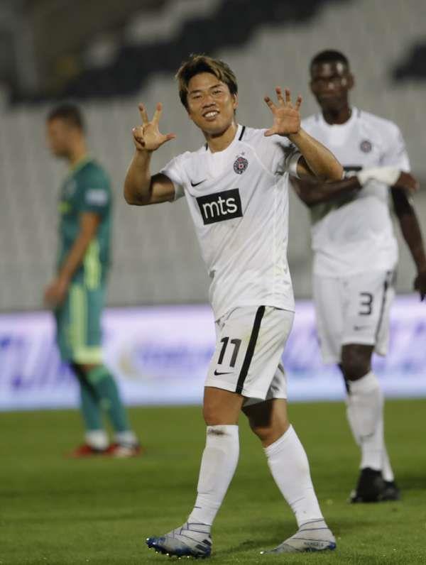 Fudbaler Partizana Takuma Asano blistao je na meču protiv Inđije.