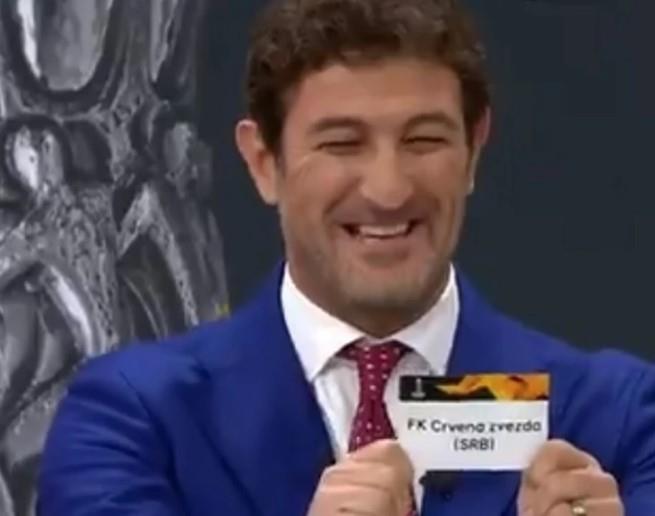 Žreb grupne fale fudbalske Lige Evrope izazvao je bujicu smeha kod navijača Crvene zvezde, jer je jedino ime srpskog i bivšeg evropskog šampiona od 48 koliko je pročitao i izgovorio zadalo muke nekadašnjem italijanskom asu Ćiru Ferari.