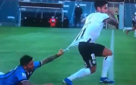Naime, fudbaler domaćina Marko Boladosa krenuo je u prodor, a kapiten Huačipata rešio je da ga zaustavi po svaku cenu. Uhvatio ga je za dres i vukao, vukao, vukao...