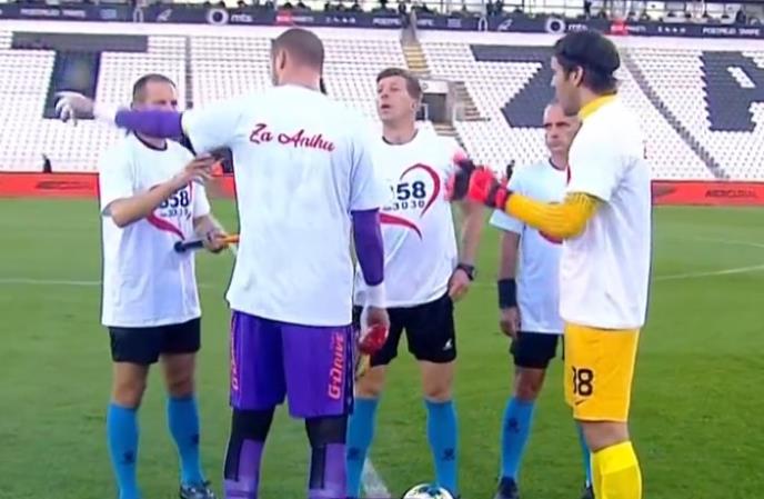 VEČITI ZA ANIKU: Fudbaleri Partizana i Zvezde na 163. večiti derbi izašli u majicama podrške devojčici (2) koja se bori za život
