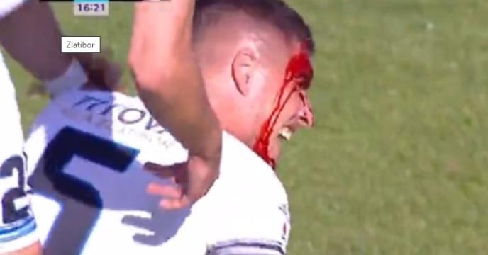 Fudbaler Zlatibora Filip Stamenković završio je krvav na travi nakon što su se on i Nemanja Čović sudarili glavama u 16. minutu posle skoka na meču tima iz Čajetine i Vojvodine.