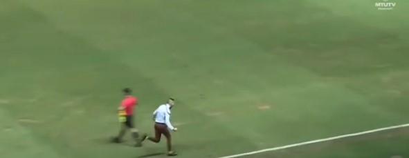 Odmah pošto je sudija označio kraj meča, u kojem su gosti pobedili ekipu Burirama 3:2, Đurovski je skočio i krenuo u sprint preko pola terena ka navijačima Munagtonga.