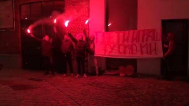 Grupica navijača okupila se u ovom belgijskom gradu tokom gde je bakljom i pesmom poslala poruku podrške fudbalerima uoči sutrašnjeg okršaja sa domaćinom u okvorui 4. kola Lige Evrope.