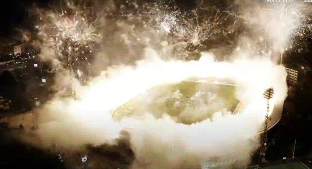 Impresivan pirotehnički šou viđen je na stadionu u Humskoj. Stotine baklji, nestvaran vatromet... Goreo je stadion Partizana.