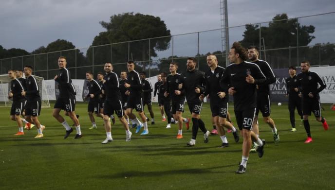 Nakon čarter leta na direktnoj liniji Beograd-Antalija, crno-beli su sleteli u Belek oko 14h po lokalnom vremenu. Shodno vremenskoj razlici od dva sata, popodnevni trening je zakazan za 18h, na jednom od terena hotela Kaya Palazzo Golf Resort.