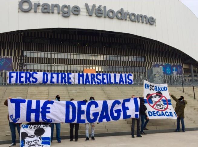 Na velikom koji je istaknut na jednoj od tribina piše "odvratni ste" i verovatno da je upućena igračima. Marsej je u prošlom kolu kod kuće izgubio od Nima sa 1:2.