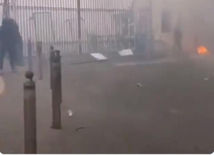 Na video snimku koji je prikazala novina La Provens vidi se kako drvo gori ispred ulaska u trening kamp, a dodaje se i da su navijači bacali baklje i pokušavali na silu da uđu, preneo je AP.