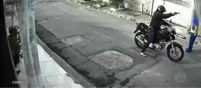 Snimak dolazi sa ulica jednog od brazilskih gradova gde se jasno vidi da pljačkaš na motoru pištolj drži uperen prema čoveku kojeg je napao kako bi mu uzeo novac i mobilni telefon.