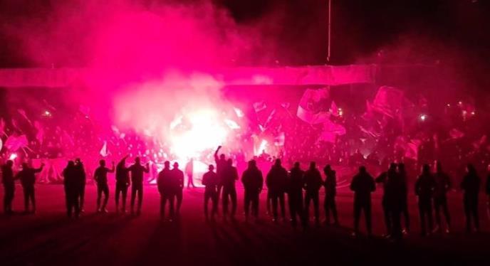 Nekoliko stotina "Delija" došlo je da podrži izabranike Dejana Stankovića, a okačen je i transparent na kome je pisalo: "Večerašnja buka jača je od sutrašnjeg muka".
