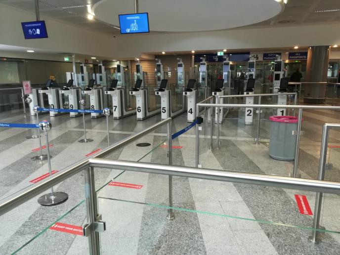 Pre ulaska u pasošku kontrolu, policija kontroliše ulazak stranaca i gleda PCR testove, bez kojih je nemoguće ući u Italiju. Osoblje pored ima dezinfekciona sredstva, rukavice i obavezne maske.