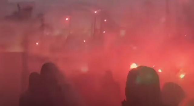Huligani su međutim brzo popalili su na stotine baklji i bacali ih gde su stigli. Jedna je čak i dobacila i do fudbalera, koji je u tom trenutku, zajedno sa kompletnim timom, bio unutar kompleksa.