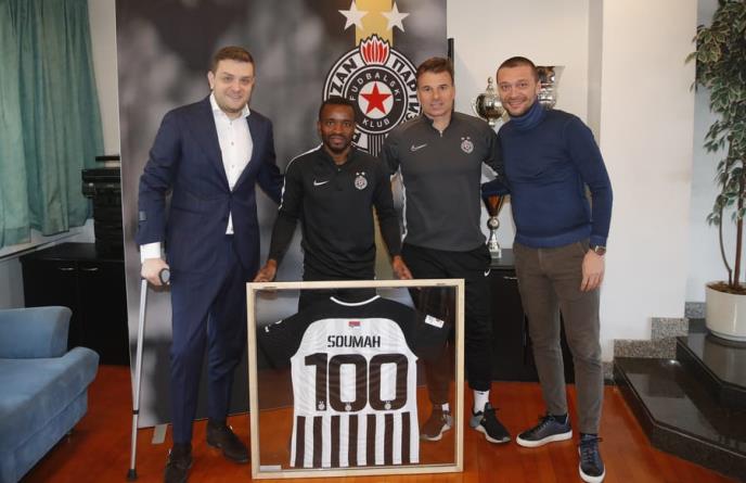 Suma od prvog dana ima naše veliko poverenje koje je i opravdao svojim igrama na terenu. Nije mu bilo nekada lako da ponese i podnese veliki pritisak koji klub nosi sa sobom. Ali se na kraju izborio! Velika je stvar kada se vaše ime upiše u veliku istoriju kluba kao što je Partizan, gde su samo dva stranca dostigla taj broj utakmica. Iz tog razloga smo želeli da mu danas posebno uručimo priznanje, dres Kluba 100 i na taj način se, u ime svih nas, još jednom zahvalimo na svemu što je uradio.“