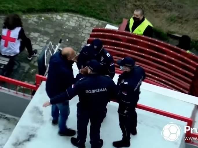 Kontroverzni Recko se kasnije popeo na krov tunela koji vodi do svlačionica, kako bi sa tog mesta posmatrao meč, pa je morala da reaguje i policija.