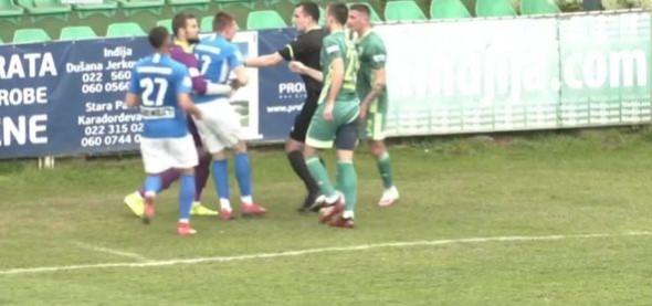 Zanimljiv detalj dogodio se i u 83. kada smo videli hvatanje za gušu između fudbalera dva tima, a glavni sudija je spor razrešio tako što je podelio žute kartone Krneti (Inđija) i Nikčviću (Novi Pazar), iako su u incidentu učestvovali još neki fudbaleri oba tima.