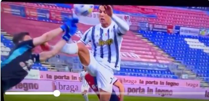Naime, Ronaldo je prilikom pokušaja da stigne do lopte i doda je Kijezi, visoko podignutom nogom krenuo ka golmanu Kaljarija.
