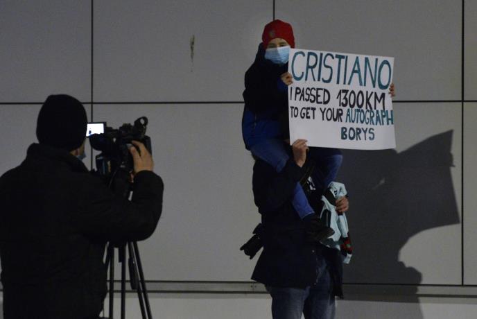 Ispred beogradskog hotela u kom su odsesli Portugalci predvođeni Kristijanom Ronaldom pojavio se mali dečak, koji nosi transparent i nada se da će uspeti da sretne zvezdu Juventusa.